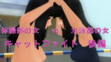 大きなおっぱい丸出しの下着姿で、殴り合い、取っ組み合いの激しいキャットファイトに発展します。